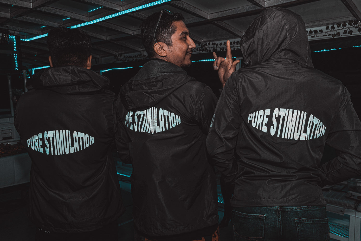 The Pure Stimulation 50 Windbreaker jacket is a 100% polyester fabric with interior water resistant coating. It features 3m reflective vinyl on the on back, front and left sleeve.